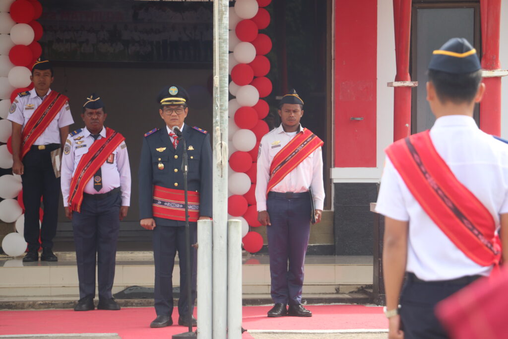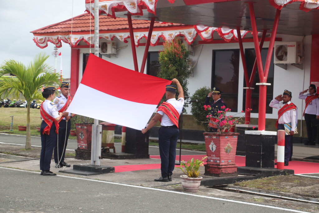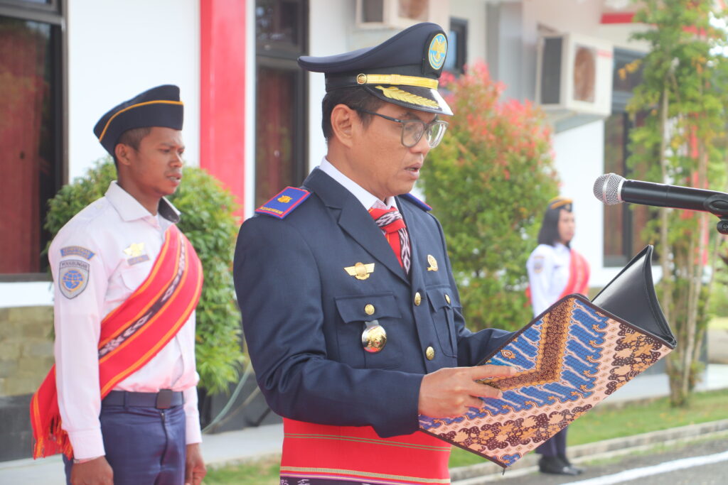 Saumlaki, 17 Agustus 2025 – Bandar Udara Mathilda Batlayeri menggelar upacara bendera dalam rangka memperingati Hari Ulang Tahun ke-80 Kemerdekaan Republik Indonesia, Minggu (17/8/2025). Upacara berlangsung khidmat di lapangan upacara bandara dan dipimpin langsung oleh Kepala Bandar Udara Mathilda Batlayeri, Bapak Akhmad Romi selaku inspektur upacara.